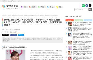 WEBメディア「マグミクス」にて「手がキレイなイメージの有名人ランキング」の記事を取り上げていただきました